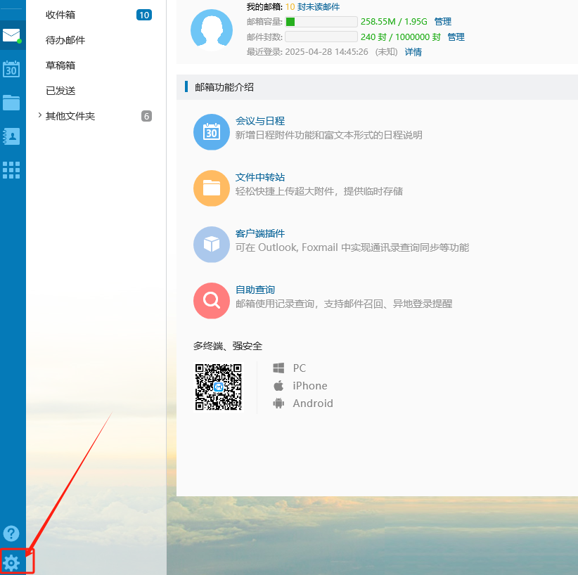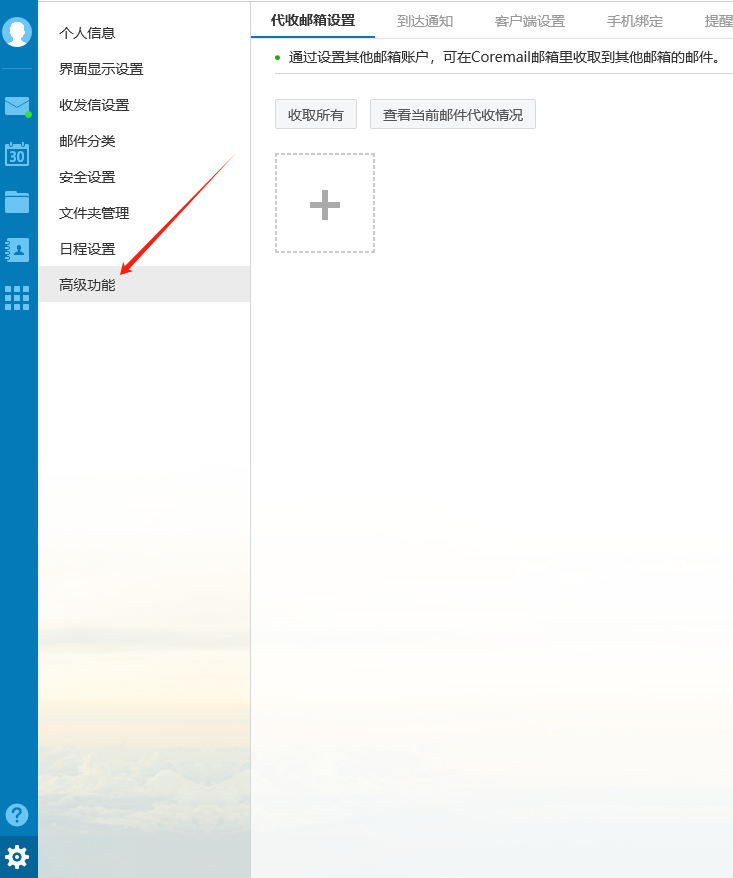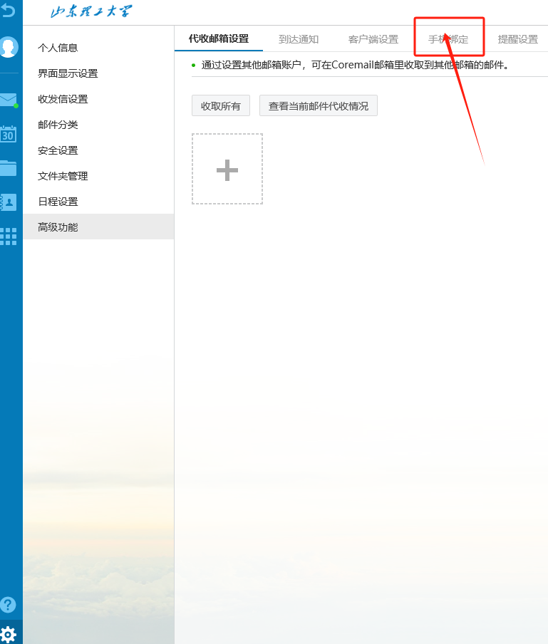 绑定手机后,选择“到达通知”可以实现新收邮件的短信提醒。